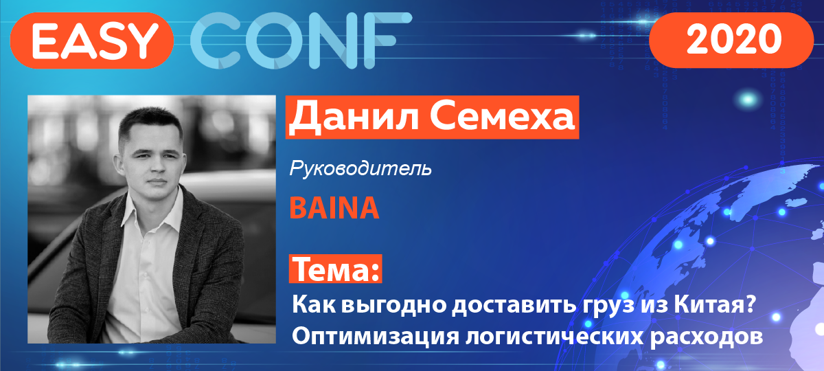 "Easyconf: Данил Семеха (BAINA), "Как выгодно доставить груз из Китая? Оптимизация логистических расходов" (видео, презентация)"