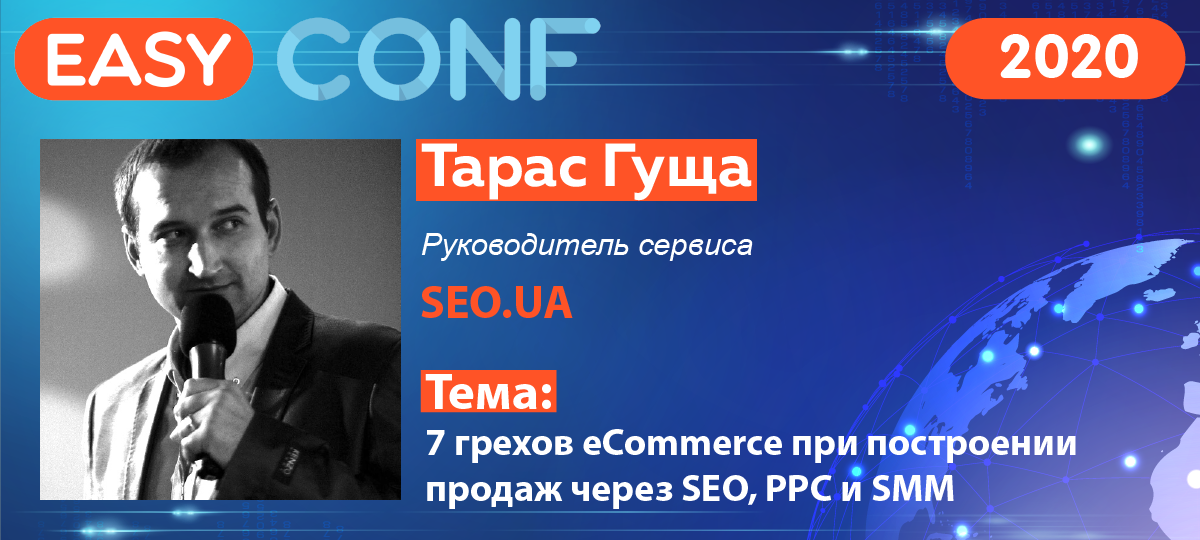 "Easyconf: Тарас Гуща (SEO.UA), "7 грехов eCommerce при построении продаж через SEO, PPC и SMM" (видео, презентация)"