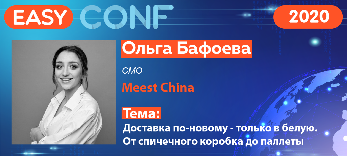 "Easyconf: Ольга Бафоева (Meest China), "Доставка по-новому - только в белую. От спичечного коробка до паллеты" (видео, презентация)"