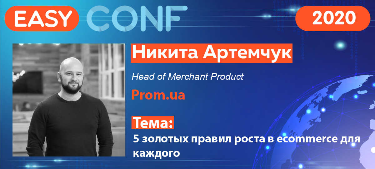 20 февраля 2020 в Киеве прошла конференция EasyConf, где выступил Никита Артемчук head of merchant product Prom.ua с докладом на тему: "5 золотых правил роста в ecommerce для каждого". Интиресный доклад. Очень правильно выстроен логически и достаточно лаконичен. Посмотреть полное выступление можно на видео ниже.